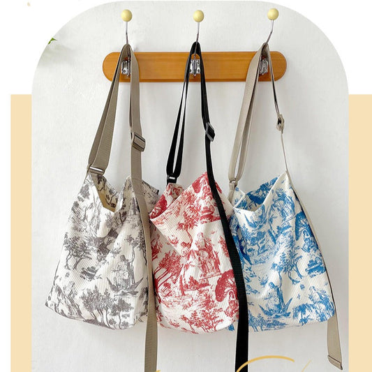 Vintage Print Canvas Shoulder Bag Vintage Grey