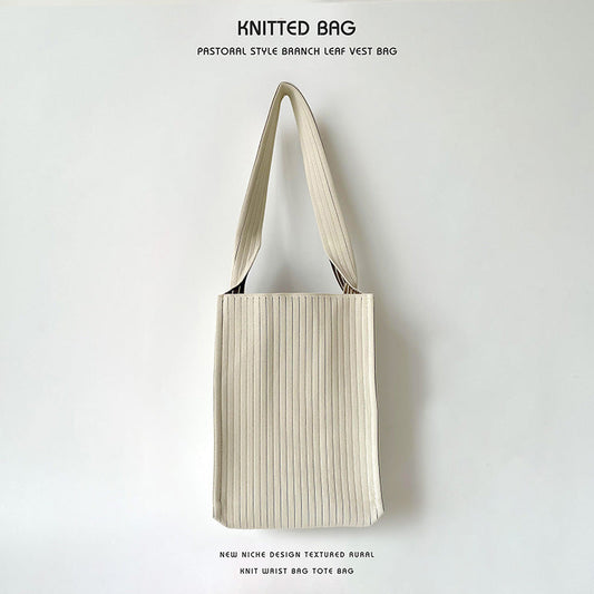 Retro Chic Knit Delight Handbag Khaki kočka s motýlem