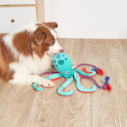 Plyšová chobotnice pro pejsky - šustící s lanem 45 cm