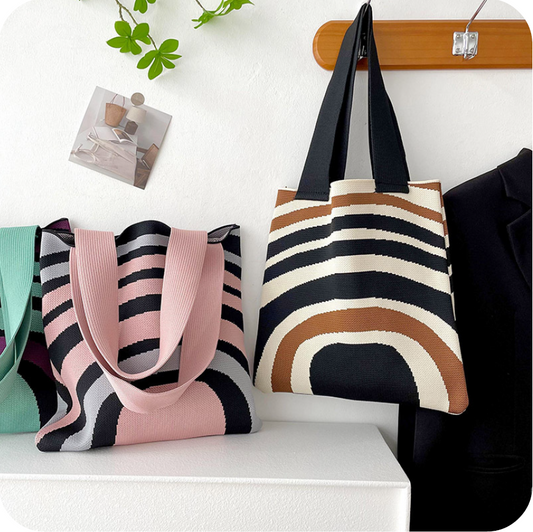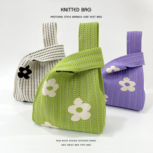 Retro Chic Knit Delight Handbag Khaki kočka s motýlem