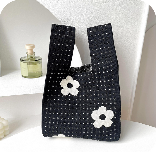 VyprodánoKorean Flower Hollow Tote Černá květina