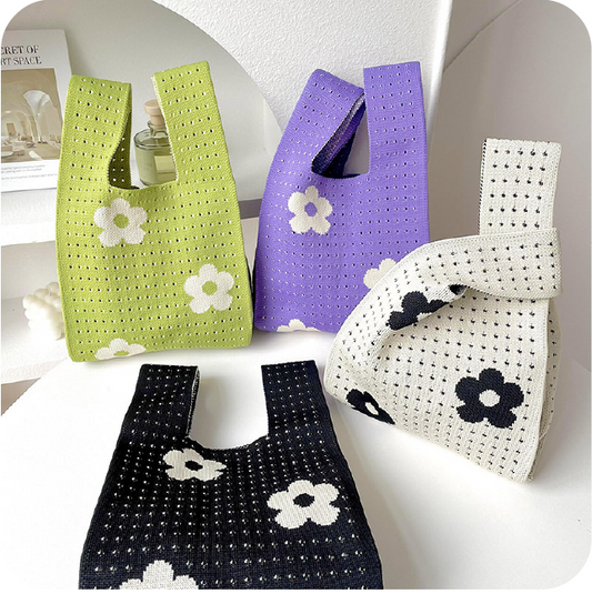 Korean Flower Hollow Tote Off-bílé malé květiny