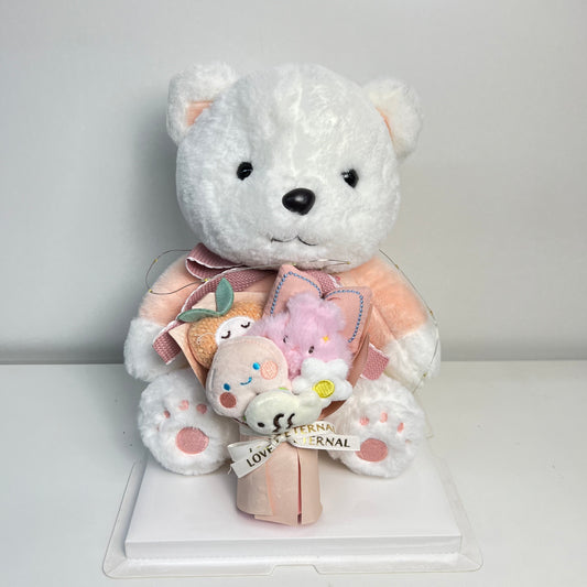 Medvídek s kyticí s plyšáky - Růžová v průhledném boxu 30 x 22cm