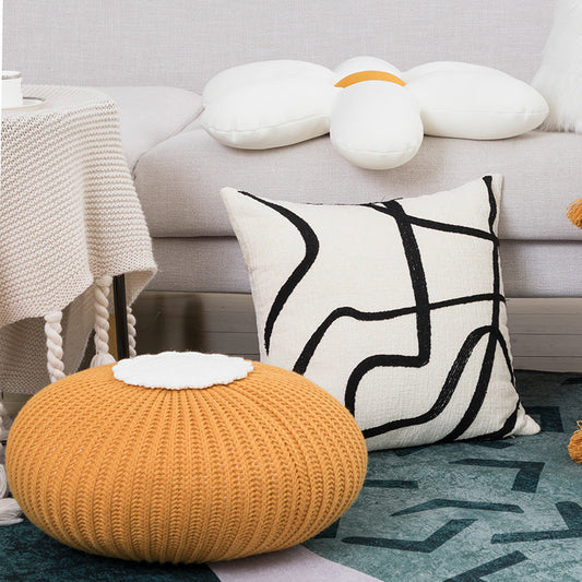 ANNAM povlak Žlutobílý polštář s třásněmi 45*45cm