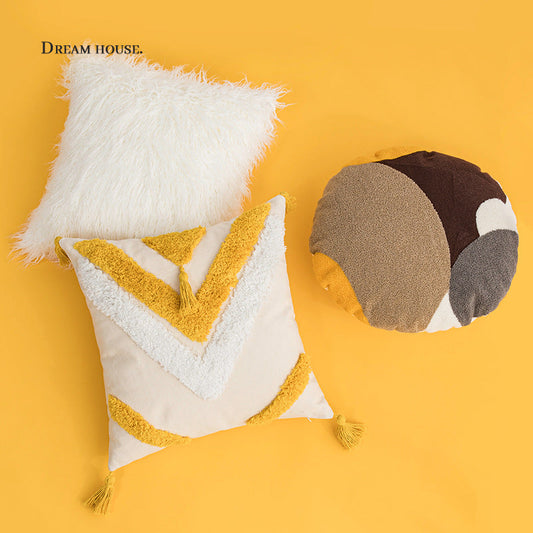 ANNAM povlak Bílá se žlutýmí třásněmi; 45*45cm [jádro není součástí balení
