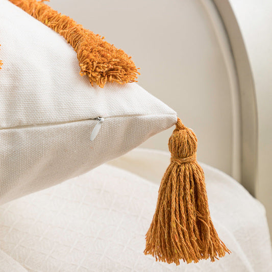 ANNAM povlak Žlutobílý polštář s třásněmi 45*45cm