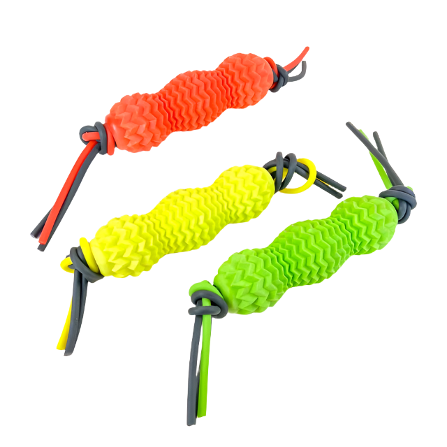 Tato vysoce odolná hračka je navržena tak, aby vydržela hrubé hry a žvýkání vašeho mazlíčka, zatímco mu poskytuje zábavu a stimulaci. Vyrobená z kvalitního gumového materiálu, který je bezpečný pro vašeho mazlíčka, tato hračka je ideální volbou pro aktivní psy všech velikostí. S texturou a různými tvary nabízí naše gumová hračka maximální zábavu a uspokojení pro vašeho mazlíčka.